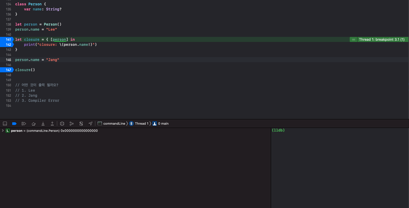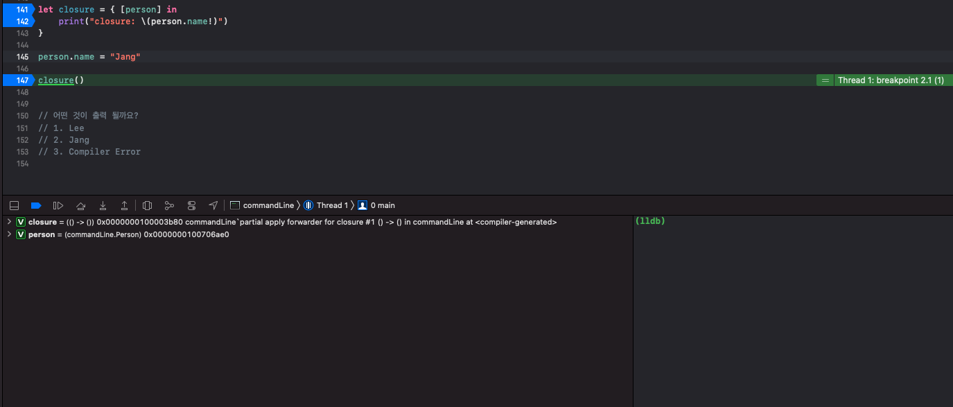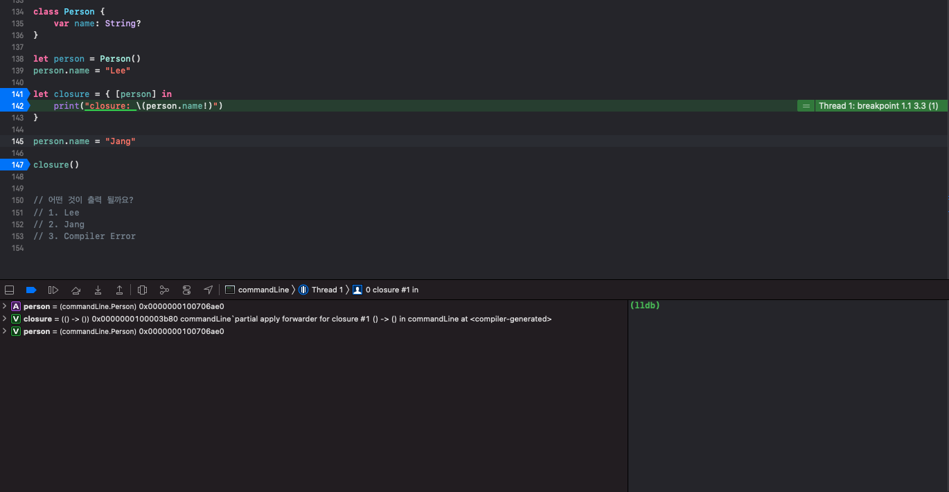 2. Closure는 변수에 할당을 했을 시에 파라미터만 캡쳐가 된다.